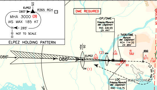 ELPEZ convenzionale: inbound 085°/ outbound 265°, +3000ft (-5000ft), IAS MAX 185kt