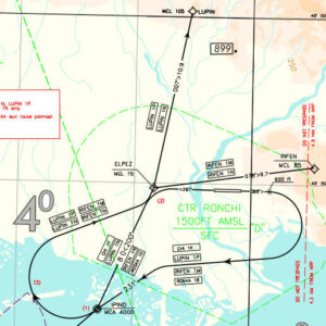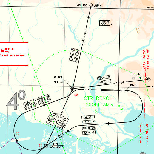 TR 267° (+450ft, IAS MAX 200kt) – ELPEZTR 200° – IPINO (flyover waypoint+4000ft)TR 020° – ELPEZ (+FL75) – TR 007° – LUPIN (+FL105)