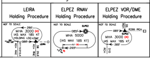 Le procedure conducono agli IAF su LEIRA e ELPEZ, sui quali sono anche previsti dei circuiti d’attesa convenzionali e RNAV1: