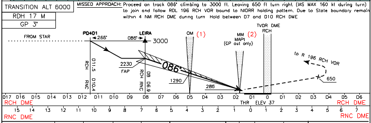 RDL 265 RCH VOR (TR 265°) (a 5NM RCH DME: +5000ft) – RDL 292 RCH VOR (TR 112°) – RCH VOR/DME (+FL75)