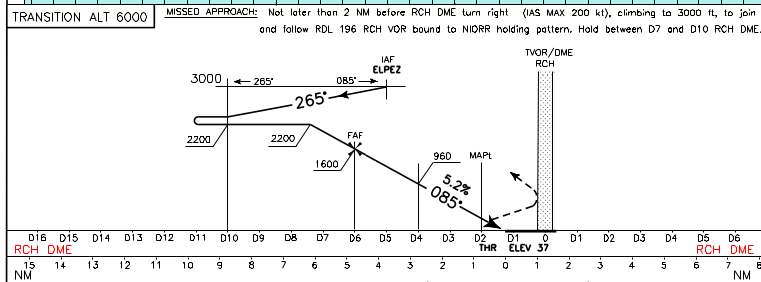 NIORR – TR 016° (RDL 196 RCH VOR) – RCH VOR/DME – TR 265° (RDL 265 RCH VOR) – ELPEZ (+3000ft)