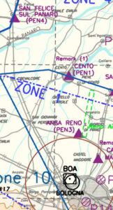 LI P145 Bologna Rocco D’Amato – SFC / 1500ft AGL (traffico civile interdetto ad eccezione di quello IFR che interessa Bologna / civil traffic banned except for IFR traffic involving Bologna airport)