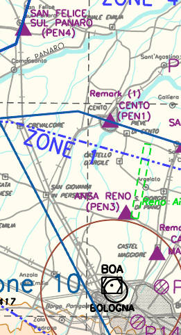 The airports of Bologna, Rimini Miramare, Forlì and Cervia are included in the airspace of Bologna Control Zone.