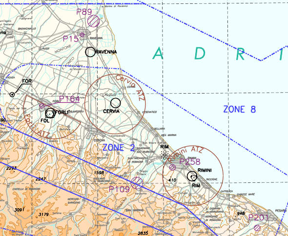 However, it is probably worth mentioning that the upper vertical limit of Rimini ATZ is 3000ft AMSL and that of Cervia is 2500ft AGL.