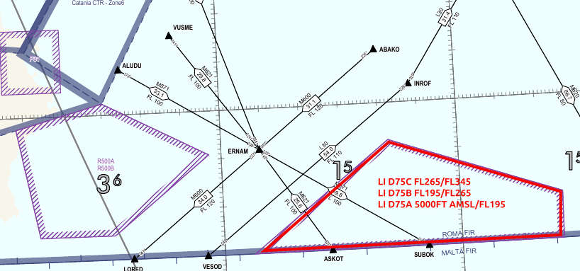 It is reported that the lateral and vertical limits of danger area LI D75 “East Sicily”, located south/east of Catania Fontanarossa Airport, have been modified.