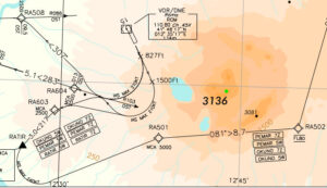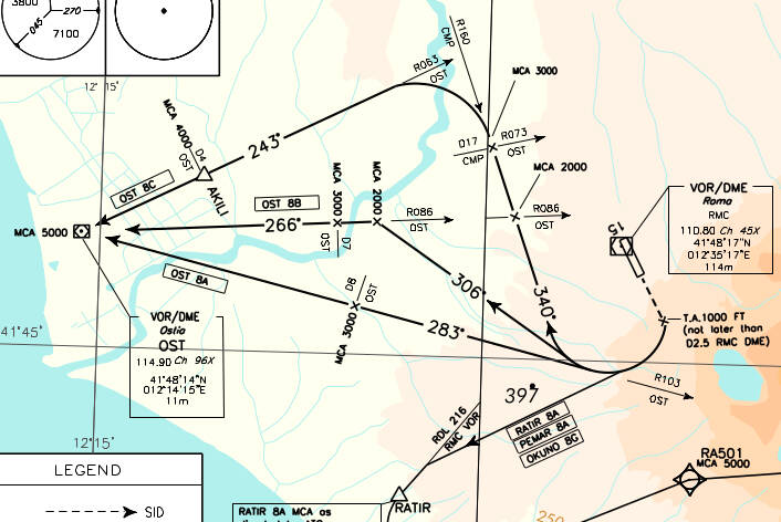 TR 329° – RA 503 (+2000ft o +1500ft per aeromobili on motore a pistoni) – TR 288° – RA504 (+3000ft, IAS MAX 210kt) – TR 243° – RA505 (+4000ft) – OST (+5000ft)