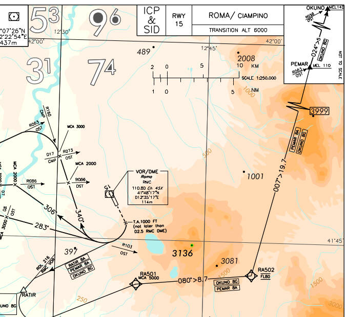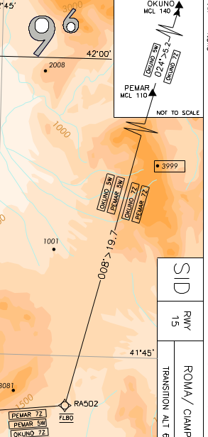 (Con la variante AIRAC A2/24, in vigore dal 22 Febbraio 2024, è stata effettuata una revisione per un aggiornamento della variazione magnetica e sono state cancellate le SID URB 8C e RATIR 8C)