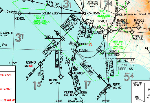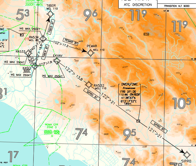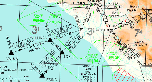 Ma circuiti d’attesa sono attestati anche sui waypoints BIBEK, ESINO, LAT VOR/DME, TIBER e VALMA.