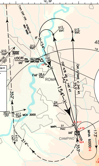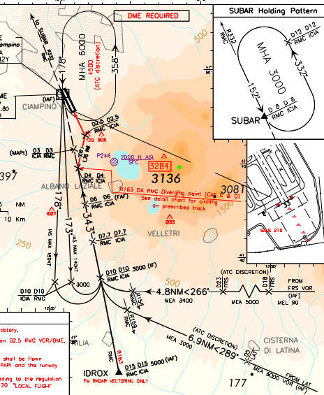 In questa carta le STAR conducono allo IAF RMC VOR/DME, sul quale è attestato un circuito d’attesa.