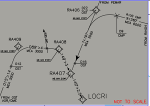 MOPUV (+FL120) – TR 236° – DESUK – TR 279° – PEMAR (+FL100) – TR 280° – RA404 – RA406 (+6000ft) – TR 197° – RA407 (+3000ft) – TR 149° – LOCRI