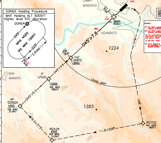 IAF sul waypoint GONGA, sul quale è attestato anche un circuito d’attesa: