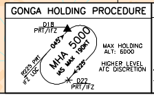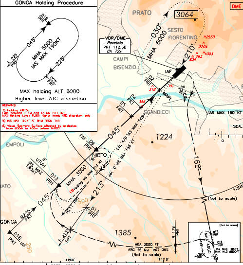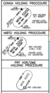 IAF su GONGA, NIBTO e PRT VOR/DME, sui quali sono effettuabili dei circuiti d’attesa.