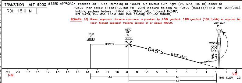 RQ601 (flyover WPT; +3000ft, IAS MAX 210kt) – PRT (+6000ft, IAS MAX 210kt)
