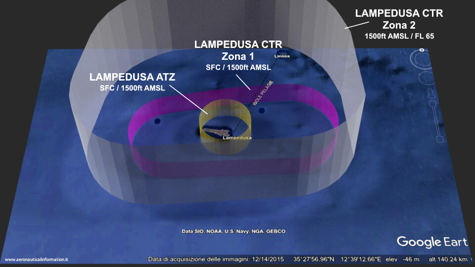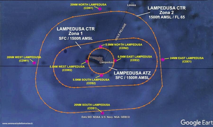 Lo spazio aereo della Control Zone di Lampedusa è stato istituito con la variante AIRAC A12/21 (in vigore dal 30 Dicembre 2021).